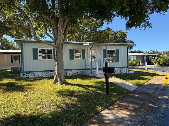 Just listed is this COMPLETELY re-modeled 2-bed 2-bath beauty located in 55+ Shoreline Palms. Lot rent is $1270.72 and includes EVERYTHING except electric. Water, sewer, trash, lawncare, internet and cable are all included. This home is located on a spacious corner lot with a beautiful view. All new Thermopane windows throughout to keep the cool in and the heat out. Brand new electrical, plumbing and water heater all replaced in 2025. This spacious home includes an open concept kitchen with stainless steel appliances, new cabinetry and new countertops. Two walk-in closets each located in the bedrooms. Brand new walk-in shower. Roof was replaced in 2020! Also included is an additional outside storage shed. This community is known for the friendly neighbors and ample amenities including a newly remodeled clubhouse, pickleball court, pool and a lake stocked with huge largemouth bass. Do not miss out on this beautifully done re-model.