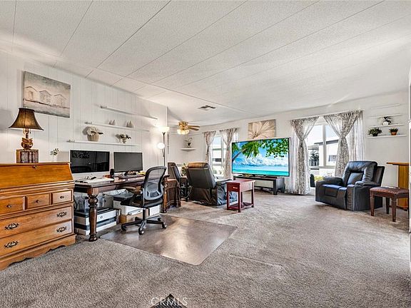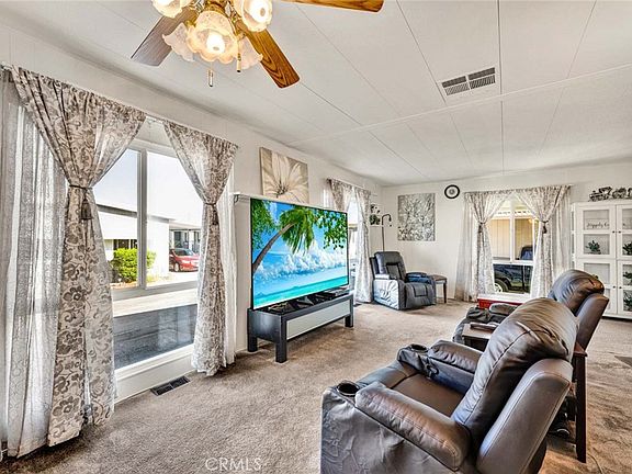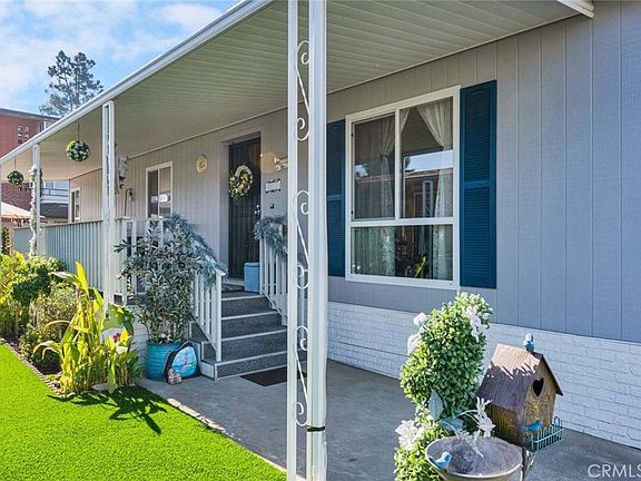 A wonderful opportunity to live in a quiet, safe, pristine & serene 55 + community that is Minutes to the Beach, Disney, Knotts, Shopping, Medical and MORE! This is a highly upgraded home with personal touches at every turn! BRAND NEW appliances are negotiable so this home is MOVE IN READY with a light & bright wide open floorplan in a very desirable back of the park location, oodles of guest parking, every kind of amenity, POOL, SPA, FANCY CLUBHOUSE and more! VERY reasonable Space Rent, (Approx. $1345 Monthly) TWO CAR covered carport, two sheds, a private back yard area with new table, chairs, and umbrella over the sitting area for those gorgeous So Cal Summer days!! Notice the beautiful and low maintenance turf, flowers, plants,, custom decorations & lush greenery abound around the outside. Cute porch area, LARGE primary bedroom & custom shower & bath, custom vanity area and SOOOO much more. A Chef's delight kitchen with all new appliances (negotiable) a well designed CUSTOM PANTRY, TWO cooktops with brand new vented hoods, new disposal just installed, too much good stuff. Notice the custom shelving throughout the home, newer windows, resurfaced shower tubs in both bathrooms, fresh paint outside, new Faux Shutters as a beautiful window accent, freshly painted cabinetry inside plus ceiling fans in bedrooms, living room and kitchen to save on utilities!! Welcome HOME!!!!