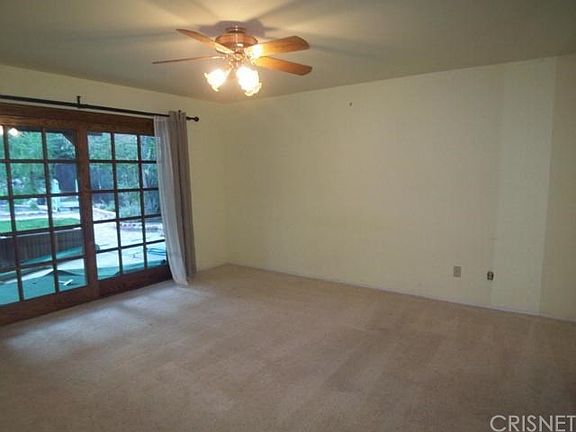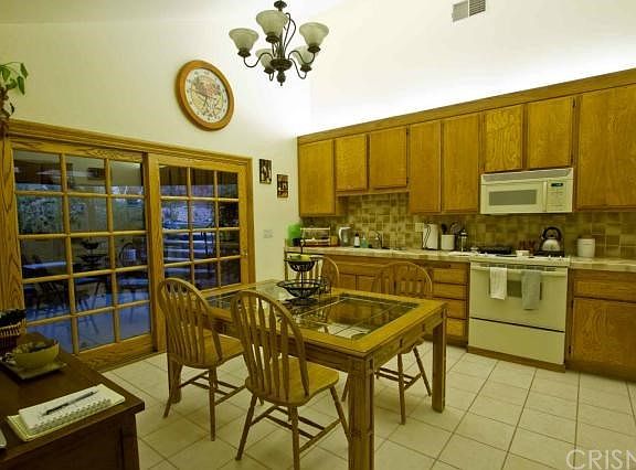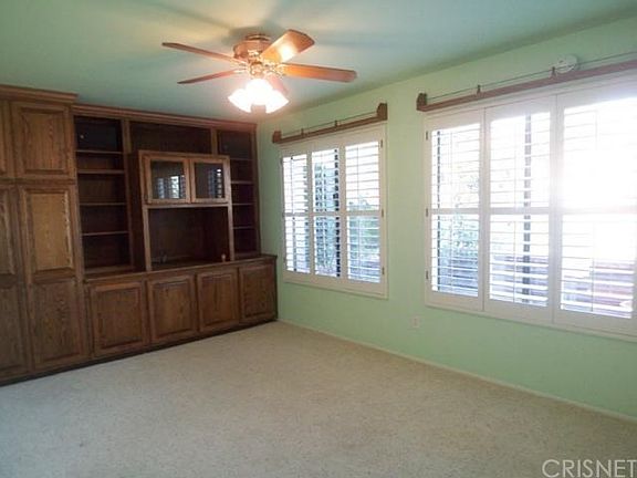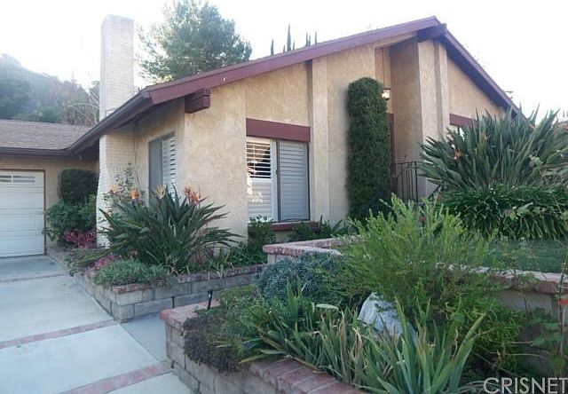 Amazing home in Porter Ranch with custom accoutrements everywhere! Step in on upper level and gaze down upon open and spacious living/dining room with pretty laminate wood flooring and plantation shuttered windows. Check out the gourmet kitchen with dining area and sliding glass doors to gorgeous back yard living and an entertainer's paradise! Large covered patio with built-in gas grill, lovely mature yard with steps that lead up to a charming gazebo with fantastic view of the valley. 3 nice-sized bedrooms and both bathrooms are on upper level with a second covered patio off master bedroom.