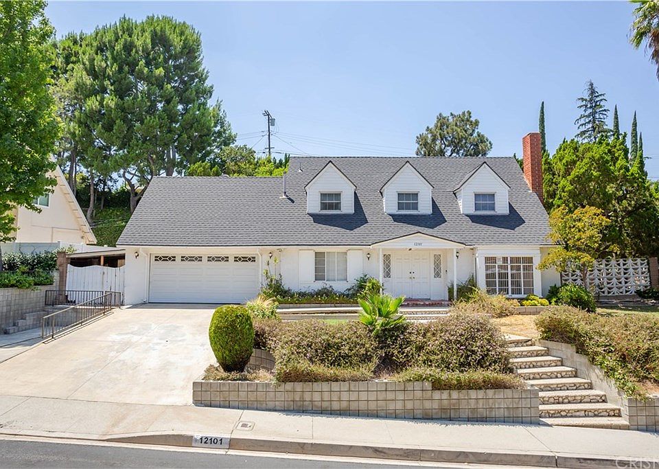 Granada Hills original 1959 Mid-Century Cape Cod charmer situated on a large 11,498 Sq. Ft. lot. Has not been on the market in over 50 years! Located in a highly desirable "North of Rinaldi" neighborhood perched at the top of beautiful scenic street, this 3-bedroom, 2-bathroom classic is a place to call home. Enter through the double doors and step into the capacious living room highlighted by the massive stone wood-burning fireplace, large picturesque window and adjacent spacious formal dining room. The Kitchen offers an island bar, generous eating area, and good-sized pantry. Downstairs you will find an ample sized bedroom and full bathroom. Upstairs features 3 front dormers providing lots of natural light, an extra roomy bathroom and 2 master suites that share the adjoining bathroom (bathroom is large enough to split into two). They don't make them like they use to...house has plenty of hidden storage areas you will love. You'll spend endless hours enjoying your entertainer's backyard with over-sized covered wood patio and private gated sparkling pool recently replastered. Use your creativity to redesign your enormous yard space large enough for a basketball court or the perfect outdoor jungle-gym playset for the kids. 2-car attached garage with direct access and side yard has RV access with extra space to park additional vehicles.