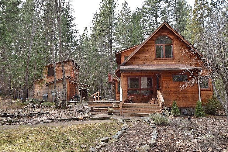 WHAT A REMARKABLE PROPERTY!! This property has two separate homes on 20 acres with privacy + GORGEOUS SURROUNDINGS!! The main home is a 3bdr/2.5 bath home w/lots of wood accents starting w/the wood floors, wood wrapped dual pane windows + the wooden beam ceiling. Filled with warmth, the wood stove keeps it nice + toasty in the winter! The kitchen has custom cabinets, Quartz counter tops, personalized drawer pulls + stainless steel appliances. The views from almost every room of this home are of the beautiful, private, tree studded surroundings + the seasonal creek which can be seen from the kitchen, breakfast area + master bedroom deck! The 2nd home, which cannot be seen from this main home, is a single story log cabin home w/2bdrs/2baths + gorgeous great room! Each home has their own separate well, septic + electricity. The main home has a 2-car detached carport + separate studio w/wood fired sauna + upstairs storage space, while the 2nd home has a 1-car detached garage! A MUST SEE!! CALL TODAY! NOTE: The accuracy of the information provided is deemed reliable but is not guaranteed, is subject to change and should be independently verified.