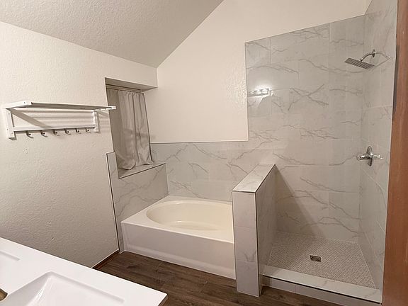 The primary bathroom features a newly remodeled shower, adding a fresh and modern touch.