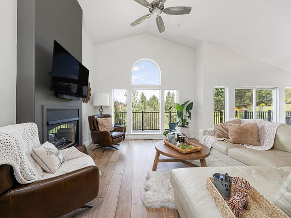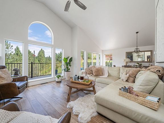 Nestled in a peaceful neighborhood surrounded by rolling hills and lush evergreens, this stunning 4-bedroom, 3-bathroom home offers the perfect blend of refined comfort and modern convenience. Step inside to a bright, open-concept living area with soaring vaulted ceilings, warm hardwood floors, and a wall of oversized windows overlooking Latah Creek Golf Course. The kitchen flows seamlessly into the dining and living areas and features high-end appliances, and ample cabinetry. Just off the main living space, you’ll find a large newer Trex deck overlooking serene treetops. The primary suite is a tranquil sanctuary with spa-inspired finishes, including a luxurious walk-in shower, double vanity, and a skylight. Downstairs, enjoy a full daylight basement with additional bedrooms, a large bonus room, storage room, and walk-out access to the beautifully landscaped backyard. Not a single detail was spared in this home! New garage door as of 2025 that makes this home stand out even more!