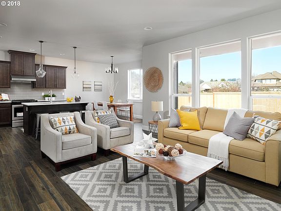 Large open kitchen and eating area, Quartz kitchen island opens up to a open and warm great room with fireplace.Engineered hard wood floors throughout the main level. Upstairs features a open bonus room, great for all kinds of activities. Out side features a covered patio and large flat back yard for gardening or creating a great play area. Front yard is landscaped and sprinkled. Great master suite with soaking tub a shower.