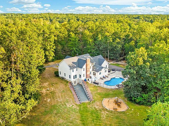 CUSTOM BRICK ESTATE WITH SALT WATER POOL, GUEST HOUSE AND 3400 SQ FT GARAGE ON 46 ACRES. Welcome to Your Private Virginia Estate. Tucked away on 46 serene acres, this custom-built brick estate home offers 6,000 square feet of refined living space, blending timeless architecture with modern luxury. A circular drive, stately columns and a side load 4 car garage set the tone for the elegance that awaits inside. Step into the grand two-story foyer, where dual sweeping staircases create a breathtaking first impression. The main level boast an eat-in gourmet kitchen with granite countertops, stainless steel appliances and beautiful cherry cabinetry. Large formal dining room is perfect for entertaining or Sunday dinners. Work from home in the oversized office or relax in not one but two family rooms. Off the kitchen, spectacular cabin-inspired addition invites you to unwind with wood beamed ceilings, floor to ceiling stone fireplace and walls of windows that frame your views of the salt water pool with water features and stamped concrete - the ultimate backyard oasis. Upstairs, discover 5 bedrooms and three full baths, including a jack and jill layout and a show-stopping "princess suite" that feels right out of a fairytale. Primary suite is a sanctuary of its own, featuring vaulted ceilings, wood burning fireplace and spa like bath. The finished walk out basement is designed for entertaining, complete with a wet bar and kegerator, fitness room, abundant storage and yet another wood burning fireplace to warm the cool Virginia nights. But the estate doesn't end there. A separate 3 bedroom, 2 bath rambler with 2 car garage is excellent for multi-generational living or rental income. Do you own a business, hobbyist, car enthusiast? You will be pleased with the 3400 square foot climate controlled garage with vehicle lift, office and bathroom. The floors are even heated!! From its elegant interiors to its resort-style amenities and unparalleled acreage, this estate is more than just a home - it is a lifestyle.