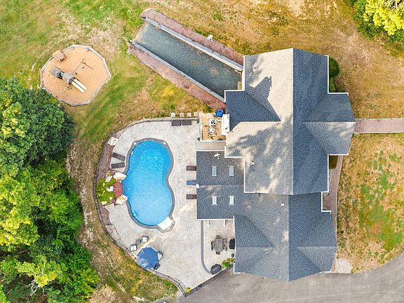 Salt water poolWood burning fireplaceFinished walk out basementOversized officeWet barCabin-inspired additionStately columns