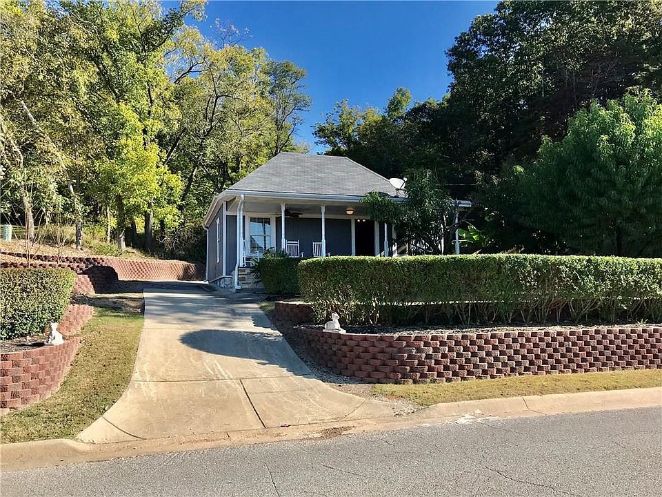 Charming little home just minutes outside of town. Unique features throughout. Beautiful landscaping with wet weather spring visible from private deck. This property sits on a 1.9 acre lot with wildlife and trees. Golf course view from front porch. New carpet in Master bedroom. 2nd bedroom or bonus room upstairs. Extra storage or work space in the metal shop out back. Pea Ridge school district!