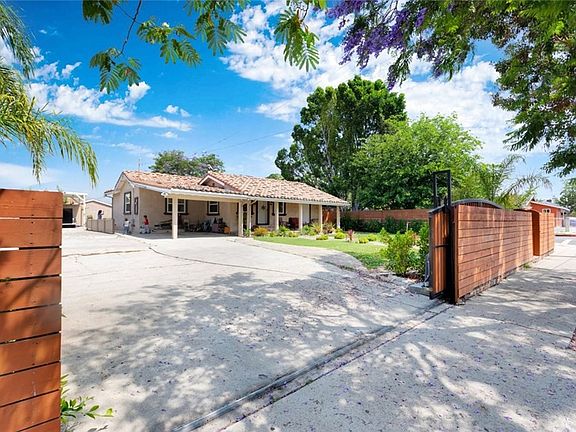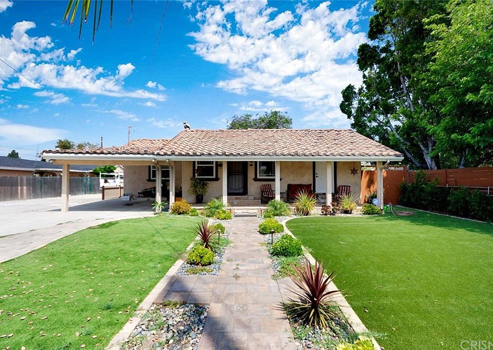 A Sun Valley 2 bedroom, 2 bathroom dream home! Nestled on a corner lot with a lovely secured entry resides a charming home built for lasting memories. The front of the home offers a picturesque landscaped exterior with a lush green lawn, a darling front porch and a large driveway that can fit up to 5 cars and even an RV! Inside boasts a bright floor-plan with 1,125-SqFt of living space, sleek flooring decorated with baseboard moldings, ceilings equipped with recessed lighting, as well as ceiling fan/light fixtures, Central A/C and even a nice sized laundry area. The dining area features sliding doors that lead out to the patio and the kitchen where you will find granite counter-tops and plenty of cabinet/storage space. There is a spacious Master en-suite bedroom that has a walk-in closet and a private bathroom, complete with a granite counter-top. Lush landscaping and ample privacy is what you can expect from the back yard. Tons of fresh colorful flowers with a covered patio where you can add outdoor seating, plus a bonus room/space with a high beamed cathedral ceiling that you can use as an office, creative studio or even a game room. (currently being uses as a fitness room). Call today and start making new memories now!