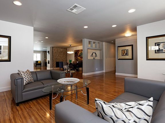 **New Listing** Nestled in the coveted Knollwood Country Estates, North of Rinaldi. Completely remodeled and redesigned for 2014, translating into a flowing floor plan.The amazing kitchen is a cook's paradise, it includes: quartz counter tops, an array of custom cabinetry, a large center island and professional grade SS appliances. This home features endless entertainment space with seamless transitioning from any room of the home. Sleek & stylish with quality materials and craftsmanship. Contemporary conveniences include: wood flooring throughout, recessed lighting, central heat & air conditioning, new dual pane windows, porcelain tiled bathrooms with mosaic glass shower surrounds, glass vessel sinks, an extra-large laundry room with custom cabinets and counter tops, chrome lighting package with sconces, chandelier, and pendant lights, and an amazing family entertainment room with built in media wall and direct access to the private back yard overlooking the sparkling pool. A true must see! Please call Karen Sanchez, Karen@TheRegalAgency.com (818) 917-5453 For more details.