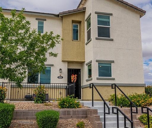 Welcome to this stylish and well-appointed 2023-built corner townhome in the highly desirable 89183 zip code—just minutes from the Raiders Stadium Headquarters, the M Resort and Casino, and with quick freeway access to Los Angeles, CA. This bright and airy home features 3 bedrooms, 2.5 baths, and a 2-car garage, offering modern comfort and convenience. From the dining area, enjoy sweeping views of both the mountains and the Las Vegas Strip—a huge feature in this community! The inviting front porch and quaint garden create a warm welcome. Inside, the open-concept kitchen boasts granite countertops, stainless steel appliances, and sleek shaker cabinets, perfect for entertaining or everyday living. A water conditioning system (owned) adds extra value and peace of mind. Upstairs, the primary suite is extra spacious, complemented by two additional comfortable bedrooms. HOA fees include water and high-speed internet. Community has 3 pools, a pet park, and a playground.