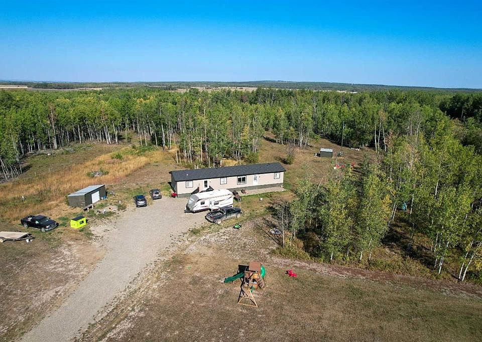 Room to grow, space to breathe, and a modern home on nearly 10 acres in peaceful Bonanza, Alberta! This 2019-built modular home offers 4 bedrooms and 2 full bathrooms, designed with an open concept that blends the kitchen, dining, and living areas seamlessly. The heart of the home features vaulted ceilings, a spacious island, and plenty of room to gather. The primary bedroom is its own retreat with a walk-in closet and a full ensuite, giving you both comfort and privacy. On the opposite side of the home, you’ll find three additional bedrooms and another full bathroom—an ideal layout for family or guests. Step outside and you’ll find a landscaped yard with a young shelterbelt of lilacs and tower poplars starting to take shape, and fruit trees including saskatoon, plum, and apple that will give the yard some great character as they grow! The property has a spacious, open feel while still having a large portion of the lot treed, offering the right balance of wide-open views and natural privacy. There’s room to build your dream shop, plus two storage sheds already in place for practical use. Connected to both municipal water and natural gas, the essentials are covered. Whether you’re raising a family, growing a garden, or simply looking for some quiet space, this acreage is ready to support your plans!