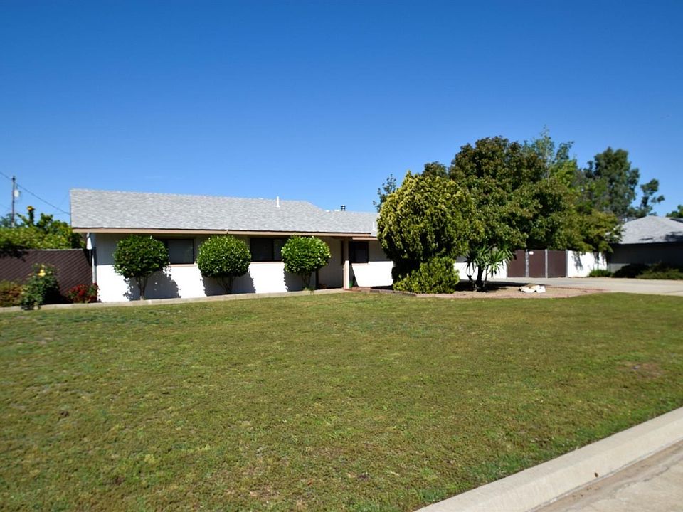Charming home on 1/2 acre lot in the Ranchos. Home features large family room, kitchen with extra cabinetry in breakfast nook, enclosed back porch not included in square footage, plus covered patio. Home is freshly painted and carpet with newer roof and air conditioning unit. Garage includes built-in cabinets on three walls with room to park two cars. Backyard is fully fenced and includes lawn, garden area, mature ornamental and fruit trees, two storage sheds and extra concrete areas All this on a sharp street with curbs and gutters in convenient location in the Ranchos.