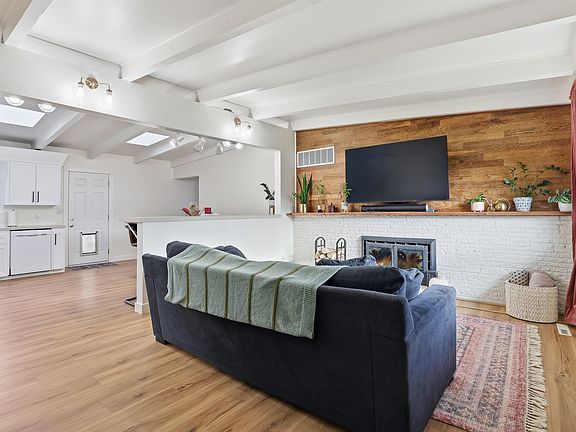 Complete one-level living in fantastic Spokane Valley location! Bright, open floor plan for main living spaces with vaulted ceilings, skylights, cozy fireplace, and newly installed vinyl plank flooring. Kitchen provides plenty of space for a large dining room space. Three generous sized bedrooms, with half bath ensuite in primary. Main floor laundry and direct access to attached two-car garage. Oversized, corner lot provides opportunity to expand backyard, add in RV parking, or even build a shop. Fenced backyard with patio and large shed for additional storage.