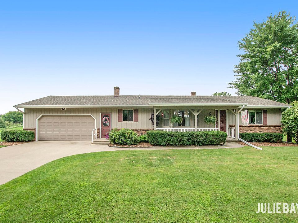 Warmth, inviting, charming & peaceful country paradise Meticulously maintained walkout ranch home sitting on just under an acre surrounded by a gorgeous field and greenery. Home is tucked behind the street line trees making this property private & secluded. Main Level: Mudroom access from garage has laundry & half bath. Nice size kitchen built-in desk, dining area has a slider leading out to 3 season room to unwind while taking in the surrounding scenic views. Living room has a bay window & door that leads out to covered front porch. 2 bedrooms & a full bathroom. Walkout lower level: family room with a fireplace, one bedroom & a full bathroom. Plenty of storage. Welcome home to where your new memories will be made Offer deadline Sunday, August 1st by 10:00 AM.