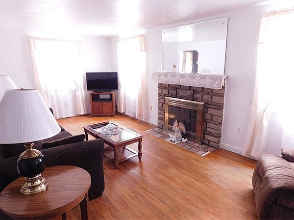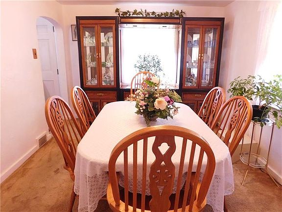Look what this great home has to offer- Large front deck, Extra large concrete parking area, 3 roomy bedrooms ,full basement with lots of storage space, spacious living room with fireplace and hardwood flooring,formal sized dining room, adjacent step saver kitchen with prep counter or breakfast nook,Big yard with shed & patio. Newer roof 2012. One car integral garage.