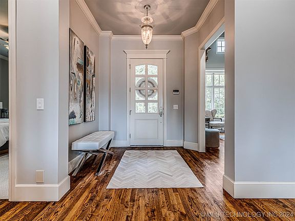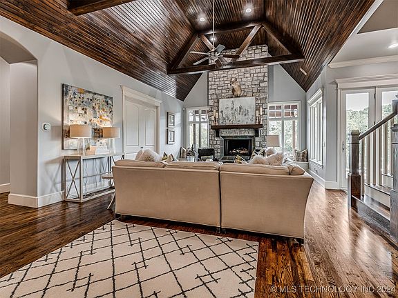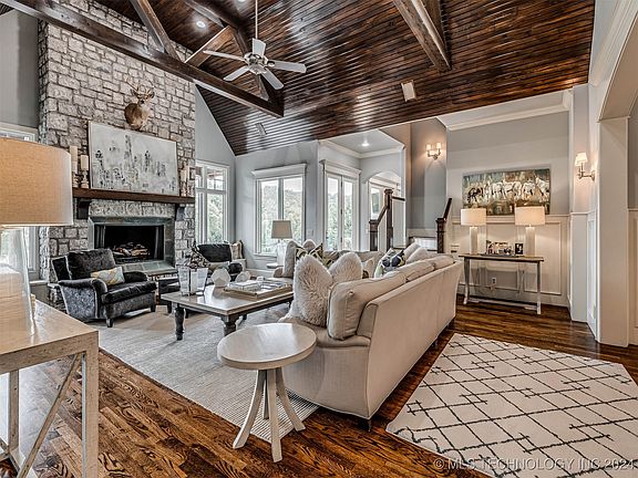 Welcome to Aberdeen Lake Estate in the coveted Jenks school district. This stunning home offers serene lake views and elegant wood floors throughout. The main level features three spacious bedrooms, each with its own full bath, a formal dining room, two office spaces, and a first-floor theater room. Enjoy two inviting living areas plus a versatile flex room. The large covered outdoor living oasis is perfect for year-round entertaining and relaxation. Experience luxury and comfort in this exceptional home. Don’t miss the opportunity to make Aberdeen Lake Estate yours!