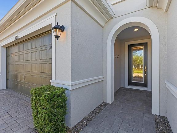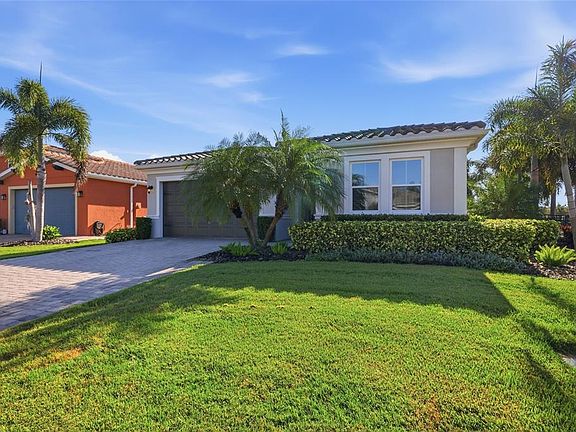 Welcome home to this custom CALATLANTIC model! 3 BEDROOMS, 3 BATHS PLUS DEN, privately set on a lush corner lot in this gated, resort-style community of AROR GRANDE at LAKEWOOD RANCH. Surrounded by majestic palms and tropical foliage with partial water views, this residence blends timeless design with exceptional privacy and true Florida lifestyle. Fresh neutral interior paint and abundant natural light highlight the open-concept layout, ideal for both entertaining and everyday living. The elegant gourmet kitchen features an oversized island with seating, rich wood cabinetry, granite countertops, upgraded stainless gas range, double ovens and walk-in pantry with glass door. The kitchen flows seamlessly into the living area and sunny breakfast nook for effortless gatherings. Triple sliders lead to the expansive screened lanai with custom outdoor kitchen and serene views of the established lush landscaping. The fenced yard offers excellent privacy, a dedicated dog run, and plenty of room for outdoor enjoyment. Inside, the home offers three generously sized bedrooms, a flex room with double doors, (dining room or office) and built-in cabinetry. The guest wing includes two beautifully appointed bathrooms, one with ADA-compliant features. The primary suite is every owners dream with a custom-designed walk-in closet featuring a center island, soaking tub, frameless glass shower, and generous storage. Additional upgrades include gorgeous wood-laminate flooring in all 3 bedrooms, custom Bahama window shutters, tray ceilings, built-ins, upgraded lighting, and 8 foot garage door. Every inch of this home has been meticulously loved and maintained, and it shows. ARBOR GRANDE offers resort-styled amenities including a beach-entry heated pool, exceptional clubhouse, state of the art fitness center, bocce ball and sand volleyball courts, on-site property manager, and private gated access directly to Bob Gardner Park. This community has a robust calendar of monthly activities and hosted events, as well as holiday gatherings and festivities throughout the year. This tranquil oasis is an opportunity to enjoy luxury, convenience, and privacy in one of Lakewood Ranch’s most desirable and established communities. Your new home awaits