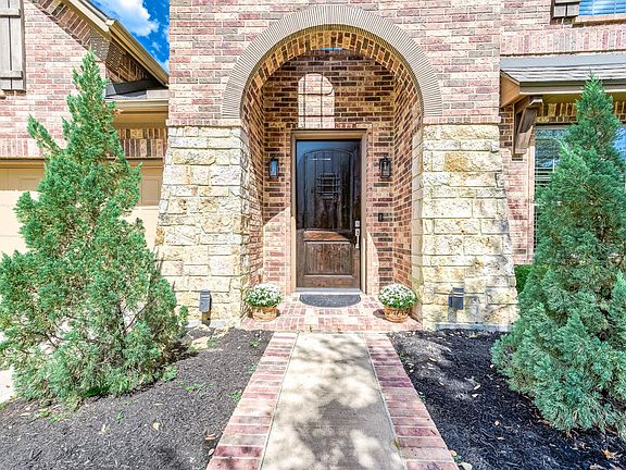 Gorgeous Custom Home on a Spacious Corner Lot! Impressive 2-story entry opens to dining room. Sellers have thoughtfully updated the home with wood-look tile throughout downstairs & complete kitchen remodel. Kitchen boasts sleek modern cabinetry, stunning oversized island & opens seamlessly to den with built-in shelving. Butler’s pantry is perfect for coffee bar or serving. Large primary suite offers sitting area - ideal for nursery or reading nook. Spa-like bath features 2 sinks & vanities, soaking tub & custom shower. Dedicated home office/library is conveniently located near half bath. Upstairs, enjoy a spacious game or media room equipped with projector & screen, built-in study area with desk & cabinetry plus 3 bedrooms. Upgrades include epoxy-coated garage floors, security cameras, RING doorbell, Honeywell smart thermostat, sprinkler system, gutters, solar screens, NEW ROOF. This beautiful home truly blends modern updates with functional spaces designed for today’s lifestyle!