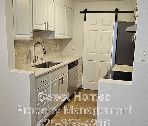 Updated kitchenIn-unit washer and dryerDining areaStainless steel appliancesNew flooringTwo parking spaces
