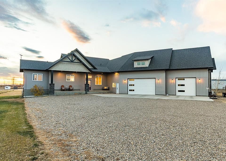 Welcome to the kind of lakefront lifestyle most people only dream about. Tucked along the peaceful shores of Klaudt’s Dam and only 15 minutes from town, this 2.17-acre property isn’t just a home — it’s a place where families grow, gather, and make memories all year long. From summer mornings spent on the water to winter evenings skating under prairie skies, this is a lifestyle that invites you to slow down, breathe deeper, and truly enjoy where you live. At the center of it all is a beautiful custom bungalow that blends thoughtful design with timeless style. The main floor welcomes you with an open-concept layout that frames those incredible lake views from every angle. The kitchen is built for connection — a large island for kids to perch at, quartz countertops, high-end appliances, and plenty of space to cook, gather, and celebrate!! Vaulted ceilings and a cozy fireplace make the living room the heart of the home, whether you’re hosting friends or winding down after a day on the lake. Step out onto the covered deck to take in the calm water, the huge yard, and the simple joy of having nature as your backdrop. The primary suite feels like a private retreat with its own lake views, a spa-inspired ensuite, and a clever pass-through walk-in closet connected directly to the laundry room — the kind of everyday convenience you won’t know how you lived without. Two more bedrooms and a full bath round out the main floor. The fully finished lower level adds even more room for living and playing. A spacious family area, rec room, and a flexible space perfect for a gym, playroom, home office, or hobby room make it easy for everyone to have their own corner of the home. Two additional bedrooms (the flex space could become a 6th if needed) and another full bath create the ideal setup for kids, guests, or multigenerational living. And then there’s the garage — oversized, heated, a dog run, hot & cold water, and built with both practicality and possibility in mind. Park multiple vehicles, set up a workshop, or store all the gear that comes with true acreage and lakefront living. With city water from West Side Water Co-Op and pressurized for irrigation, caring for the property is effortless. The expansive yard is ready for family barbecues, outdoor adventures, and long, relaxed evenings under the open prairie sky. And with the lake just steps away, every season brings something to look forward to — swimming, fishing, paddleboarding, skating, or simply sipping your morning coffee by the water. Whether you’re searching for a full-time family home or a place to escape and reconnect, this lakefront acreage in this special community offers something rare: luxury that feels liveable, nature at your doorstep, and a lifestyle designed for connection, adventure, and joy. This home is in immaculate condition; all that is to do is move in and start enjoying!