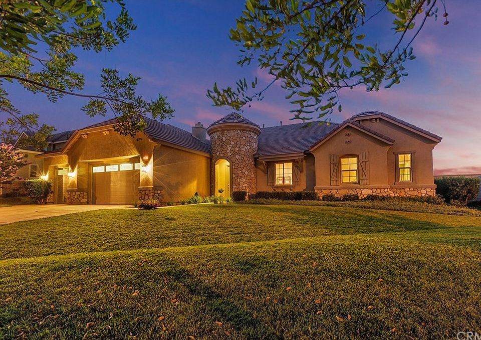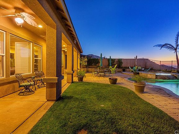 Stunning Executive View Home. Rarely does this one story floorpan come on the market. Located in the wonderful community of StoneHarbor and Bridgeport. Take a look at the stunning views with custom pool and spa accented with flagstone, pavers, custom landscaping with sitting areas great for family fun and fellowship. This beautiful home offers 3575 square feet with open floor plan with plenty of room for your growing family. Featuring 3 bedrooms with option of a fourth bedroom and four baths completely upgraded throughout. Walk into this expansive home with 10 ft ceilings, beautiful travertine and hardwood floors, custom cabinetry, plantation shutters, crown molding and much much more. Home offers formal living and dining room with lovely fireplace expanding into the great room with chefs kitchen, expansive island, wonderful views opening up to a Family Room with a Cozy brick lined Fireplace. Added features are ...........Two separate patio areas, large walk in pantry, three car garage, separate laundry room with custom cabinetry and sink. Backyard is perfect for entertaining with beautiful mountain range and city light views. This truly is one of Riverside's most prestigious and family oriented communities. This stunning home has it all, only a few minutes away from both the 91, 15 Fwy, Metrolink and plenty of shopping. Gorgeous home with gorgeous views year round, don't miss this opportunity.