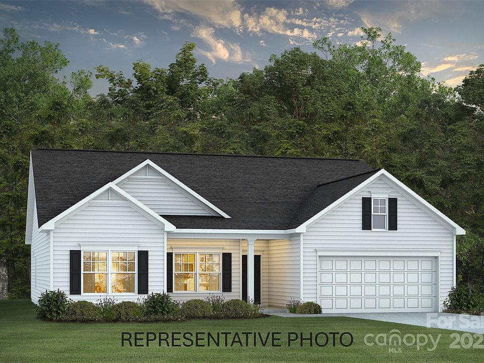 Welcome to The Lancaster ranch plan at Pine Bluff. This 3-bedroom 2.5 bath open floor plan includes a spacious great room that flows into the kitchen which features a seated island, 42" White Cabinets, granite countertops, tiled backsplash and stainless-steel appliances! The primary en-suite is equipped with a tray ceiling, double vanities, a large tiled walk-in shower and a huge walk-in closet. Durable vinyl plank flooring is featured throughout the main living areas, including all baths and laundry. Enjoy relaxing on the front porch with a cup of coffee in the mornings and winding down on the covered back patio in the evenings. This community features rare 90-foot lots that create desirable space between each home- a staple of the Pine Bluff community. Located just minutes from Villages at Red Bridge shopping center, Locust Town Center, Red Bridge Golf Club, grocery stores, Rob Wallace Park and a short drive to I485, Novant Health Mint Hill Medical Center and Publix. Schedule your appointment today- your new home awaits.