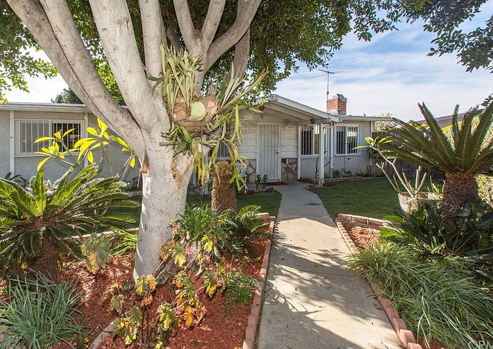 One of a kind 3 bedroom, 2 bathroom home at the end of a shared driveway. Perfect, private location. Newer laminate wood flooring and new double paned windows throughout home. Open floor plan with a number of possibilities. The living room has a laid back feel with a fireplace and easy access to the patio and back yard. Plenty of cabinets in the kitchen with newer upgraded included appliances. The master bedroom has a bathroom with built in storage and all bedrooms are good sized. Both bathrooms have nice upgrades. The large bonus room opens up many options with an attached large laundry area. Permits of bonus room unknown. Buyer to verify all permit information. Newer ceiling fans throughout the home. The backyard has a couple of patios and several fruit trees, including lemon, Dragon fruit and grapefruit. Plumeria plants brighten up the landscaping. There is a detached 2 car garage and a driveway with room for at least 2 cars. One of the largest and most private lots on the street. The windows throughout the home are new. The home is in good condition and sold As Is. City inspection report to be provided upon offer acceptance