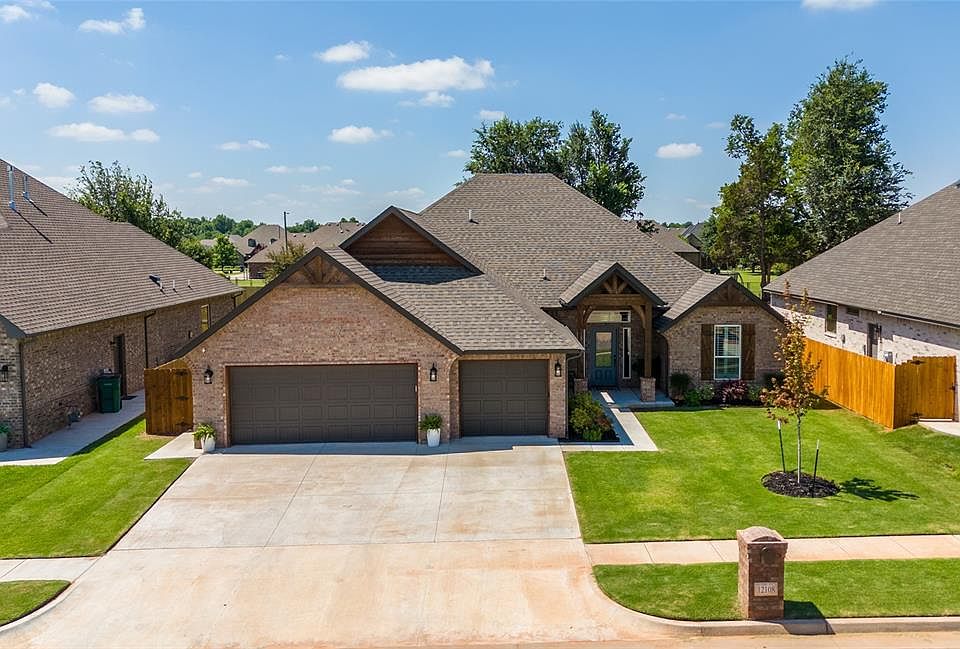 Truly a pristine and remarkable place you can call home in Mustang Ridge. Nestled on a spacious and serene lot in the back of the neighborhood, this stunning residence is a true masterpiece of design and luxury. With its beautifully manicured lawn and lush greenery, the exterior exudes warmth and sophistication. The open concept living area is perfect for entertaining, with an amazing kitchen that boasts top of the line appliances and ample amount of counter space. What truly sets this apart is the outdoor space that offers endless possibilities for outdoor living. Schedule a showing and don't miss your chance to make it yours!