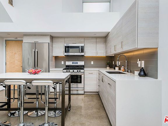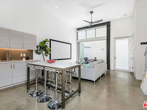 Spectacular 2015 single family architectural home at the threshold of Santa Monica, featuring dramatic volume and eye-catching lines throughout. Designed to exemplify and facilitate modern living, the open living room features soaring two-story ceilings, concrete floors, and a wall of glass offering indoor/ outdoor access to the front patio. The striking gourmet chef's kitchen includes top quality appliances, and a large island table for casual dining or social gatherings. A spacious master bedroom suite features a luxurious bath, walk-in closet, and private outdoor patio. The top living level includes a second bedroom, full bath, laundry room, flexible third bedroom loft - also perfect for use as a home office, or den/ lounge - and stairs up to the sprawling rooftop deck. Hardwood floors, custom remote operated shades, video projector and screen, and a 2-car attached garage with new epoxy floor. No HOA dues, and very low maintenance. Close to all Westside and Santa Monica attractions!