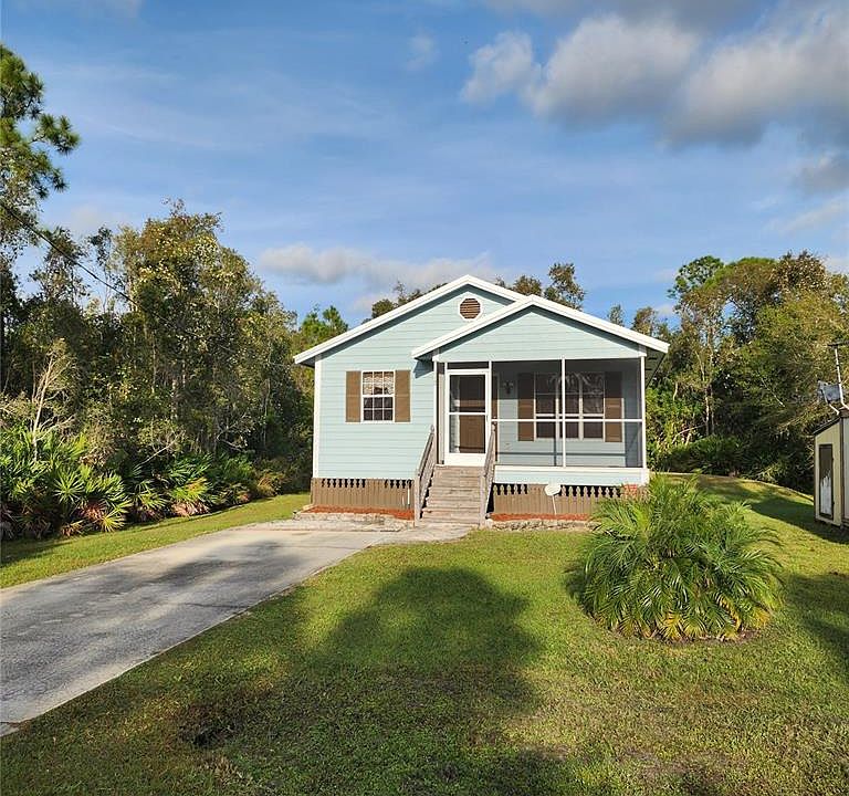 JIM WALTERS SAN ANTONIO CUSTOMIZED MODEL – SPACIOUS 2/2 ON OVER A QUARTER ACRE WITH WORKSHOP! Welcome to this charming 2-bedroom, 2-bath home nestled on over a quarter acre of land in Tropical Gulf Acres—where peace and privacy meet convenience! With no HOA fees, a large workshop, and plenty of storage, this property offers the perfect blend of comfort and functionality.As you enter through the screened front porch, you’re greeted by a bright and spacious living room featuring built-in shelving, a ceiling fan, and abundant natural light—a perfect space for relaxing or entertaining. The dining area flows seamlessly into the kitchen, which is equipped with a stainless steel refrigerator, gas stove, closet pantry, and a large sink.Just off the kitchen, you’ll find the indoor laundry room with convenient back door access to the yard. Down the hall, two generous bedrooms provide comfortable living space. The primary suite features a walk-in closet and a private bath with tasteful tile flooring, single vanity, and a walk-in shower. The guest bedroom offers ample space and access to its own full bath with a tub/shower combo. Step outside to your large workshop, complete with concrete flooring, barn-style doors, and ample storage space—ideal for car enthusiasts, woodworkers, or anyone needing a versatile workspace. Recent updates include a 2022 metal roof, 2024 A/C, 2023 in-ground well pump, and a 2025 water heater—providing peace of mind for years to come! Enjoy quiet, peaceful surroundings while being just minutes from everything—easy access to I-75, US 41, North Port/Sarasota, Cape Coral/Ft. Myers, and historic downtown Punta Gorda with its fine dining, boutique shopping, and waterfront charm. Don’t miss your chance to own this well-maintained Florida home—schedule your private showing today!