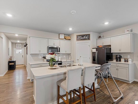 This beautifully maintained Gretna home is designed for comfort, function, and everyday living. Located in a growing community with award-winning schools, this home offers the perfect blend of convenience and small-town feel. Step inside to an open and inviting main level featuring a bright living room with large windows and a cozy fireplace. The kitchen includes stainless steel appliances, plenty of storage, a pantry, and a center island—great for gathering or quick breakfasts. The dining area flows seamlessly to the backyard, making entertaining easy. Upstairs, you’ll find spacious bedrooms including a private primary suite with a walk-in closet and ensuite bath. The secondary bedrooms offer flexibility depending on your needs. The finished lower level is a standout—complete with a wet bar, a 4th bedroom, and an additional living space perfect for hosting. Outside, enjoy a fully fenced backyard with room to play, garden, host BBQs, or unwind after a long day.