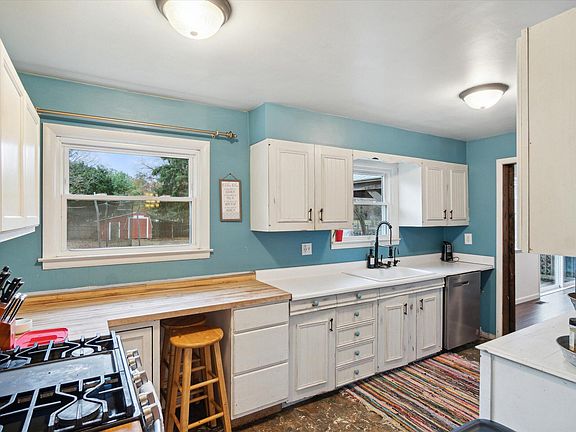 This spacious 6 bedroom, 2 1/2 bath house on 1.6 acres with a steel roof is complete with two private decks, a huge living room central on the main floor and is ready for entertaining with a formal dining room. Several years of thoughtful and quality upgrades include an addition with 2x6 framing, two laundry rooms, one on the main floor and a stackable unit in the primary suite upstairs, two staircases to basement, an attached two car garage with TALL 10 foot ceilings + extra tall, insulated (9 foot) door with opener, newer A/C with heat pump. Property has a newer steel framed pole building w/concrete floor, storage shed, greenhouse and several perennials and fruit trees PLUS blueberry bushes. Home is currently propane, natural gas available at road. Save on utility costs w/ pellet stove.