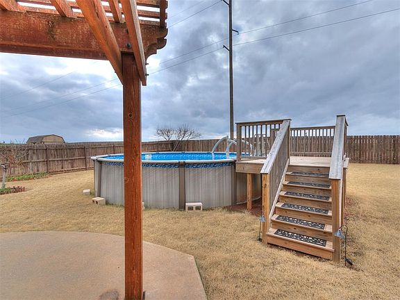 Back on the Market!! Welcome home! This lovely 3 bed, 2 bath home is ready for a new owner. Nestled at the end of a quiet Cul-de-sac on an oversized lot in a highly sought after neighborhood, this one won't last long. With excellent curb appeal, covered front porch, side entry garage, new roof and copper guttering this property will have you anxious to see inside. Stepping in the front door you're welcome by an expansive entryway. This home has tons of amenities. With a designated office space you won't have to worrying about taking up bedroom or living room space. Desirable open concept living, dining and kitchen is the perfect spot for all to gather. Gas burning fireplace is the focal point of the living room. Master bedroom is quite large and offers it's own private bath. Double vanities, walk-in shower, soaking tub and huge Australian closet. 2 guest bedroom are nicely located on the opposite side of the home. Huge bonus den/living room upstairs. Stepping out the back door you're greeted by the wooden pergola, above ground pool with custom built wooden deck, storage building, privacy fenced backyard all positioned beautifully on just under a 1/2 acre lot. Watch the sun set with unobstructed views from the back patio. This hime is a rare find in Kingfisher!