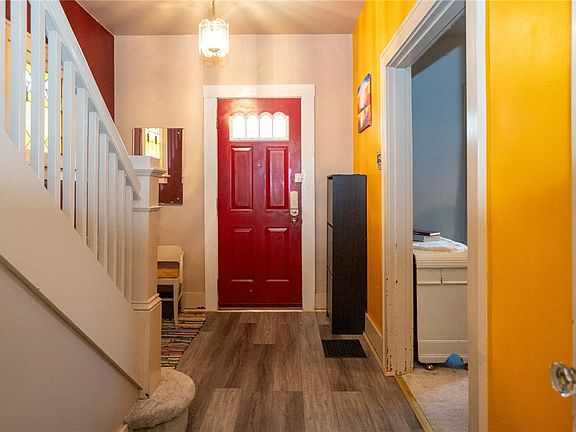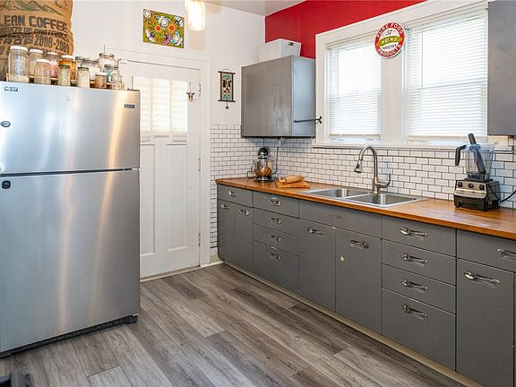 This beautifully renovated 3-bedroom, 2-bathroom property perfectly combines modern updates with classic character. The heart of this home is its picture-perfect kitchen, a culinary haven featuring sleek stainless steel appliances, a vintage-inspired backsplash, butcher block countertops, and modern flooring. The spacious living and dining areas create a warm and inviting atmosphere with stunning stained glass windows, expansive windows, decorative fireplace, and newer carpeting. Upstairs, you’ll find three beautifully appointed bedrooms and a stunningly renovated full bathroom. The versatile third-floor bonus room provides additional finished space perfect for a home office, playroom, or an extra bedroom. A second full bathroom and laundry area are located in the dry basement. The covered front and back porches are ideal spots for entertaining guests or unwinding after a long day. Enjoy peace of mind and energy efficiency with updated mechanics and blown-in insulation.