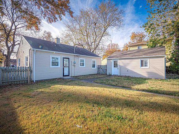 Wonderful 1 story 2 bedroom home w/detached oversized 1 car garage is available completely UPDATED & ready to MOVE-IN! Plus, on garage, there is a built-in workbench, drawers, garage door opener w/remote, 2 windows & garage entry door w/top half divided light window+updated roof all overlooking a large yard to boot! The front entry w/decorative top stain glass window & storm door greet you into a nice size living room+back door features a storm door too! There are all newer improvements from 2021 including replacement windows throughout home, insulated doors front & back, vinyl siding, foam insulation behind siding, paint, trim, carpet w/pad & a high efficiency gas furnace & central air conditioning unit +high efficiency gas water heater. Moreover, the kitchen has an UPGRADED 2021 LG STAINLESS APPLIANCE PACKAGE including 5 burner gas range/oven, dishwasher & refrigerator+there are CORIAN countertops w/CORIAN sink & faucet w/pull out sprayer, TONS OF WHITE RAISED PANEL CABINETS w/pull out bottom cabinet for 2 trash cans or use 1 for recycle, waterproof plank flooring in entry, kitchen, dining, laundry & bath+tile backsplash in kitchen & tub surround on tub/shower combination in cherry full bath! This is a SUPERBLY UPDATED HOME with NEW blinds & NEW LIVING ROOM CURTAINS, sold as-is, but buyers are welcome to inspect, average utilities last 12 months only $97.09/month! MUST SEE!