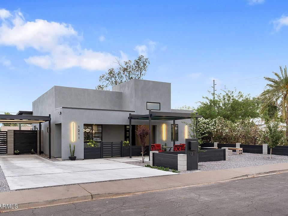 EVERYTHING BRAND NEW!! Owner did a complete tear down in 2024 leaving 1 wall standing for cheaper tax benefits & completed the build in 2025. NO HOA! Discover a rare gem in North Phoenix: a spectacular & chic modern home that redefines unique design. This architectural showstopper features a split floor plan with 3 bedrooms & 2 full bathrooms. The master bathroom offers a true spa-like experience. In the kitchen, exquisite cabinetry complements an impressive, oversized stone island. What truly sets this home apart is the designer metallic epoxy flooring that flows throughout, creating a breathtaking & continuous artistic statement. The modern design continues outdoors, featuring a variety of seating spaces with endless configuration options. The thoughtful integration of steel structures concrete, & the homes stucco finish creates a cohesive & visually appealing exterior. Parking is plentiful, 4 slab spaces & a covered carport await. This is an absolute stunning design sure to please. Soaring ceilings, open concept, 14ft island, quartz counters, waterfall edging & quartz backsplash along with a gigantic walk in pantry. Brand new SS appliances, including slide in range, epoxied floors, modern light fixtures., recessed lighting throughout,, wine fridge, pendant lighting., electric smart toilets and more. Large bedrooms including huge master retreat equipped with a gorgeous walk in shower & stand alone tub. Huge walk in closet. This is a modern contemporary masterpiece thoroughly thought out. 2 car garage is not in use & is a perfect opportunity to capitalize on transforming this into a casita or ADU.