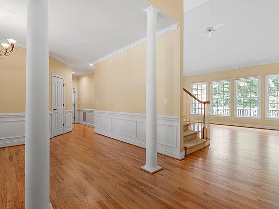 Luxurious 4 bed, 2.5 bath home in prestigious Treyburn Country Club, perfectly perched on hole #6 of this Tom Fazio designed course! This spacious retreat boasts newly refinished hardwood floors, upgraded kitchen cabinets, and a massive finished basement ideal for entertaining. Features an upgraded master bath with a stunning, must-see walk-in shower, plus a brand-new, remodeled upstairs bath. Enjoy a new deck off the main level, a screened-in porch at the walkout basement level, and a 2-car garage for ample storage. Live the country club lifestyle with top-tier amenities and serene surroundings. Don't miss this dream home!