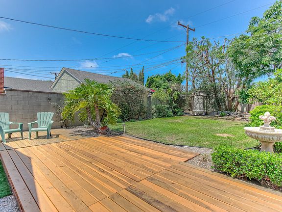 Located on the east side of El Segundo is this charming cottage is walking distance to parks and schools. As you enter through the front door notice the wood floors with an open living/dining concept. The large master bedroom features an en suite full bathroom. The second bedroom is bright with tons of natural light coming in through the well appointed windows. The second bathroom is located in the hallway and has been recently upgraded. The kitchen has tile counter tops a gas stove, dishwasher and wood floors. Walk through the laundry room into a large private back yard. A large wood deck is off the back of the house ready for outdoor furniture or a dining table. The water fountain creates a soothing atmosphere. The large grassy yard is perfect for entertaining or family playing. There also is a two car detached garage. The gate on the driveway makes the back yard completely secure. Owner pays water