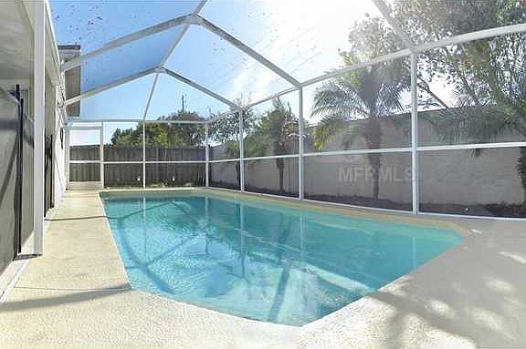 BIG ADVANTAGES GIVE THIS HOME OUTSIZED APPEAL! A fenced yard with a privacy wall in back. Your own pool with a lanai that's screened and roof-sheltered. A clean, open design that makes the most of over 1,360 square feet. And a location so convenient to everything -- shopping, restaurants, commuter routes, and more -- that you walk to the neighborhood elementary school just a block away! Tile and wood laminate floors are throughout the 3-bedroom, 2-bath home, and the kitchen has been updated with stainless appliances. You also get plenty of raised-panel wood cabinets, an inside laundry room, and a 2-car garage. This is a regular sale that can close quickly. See it today!