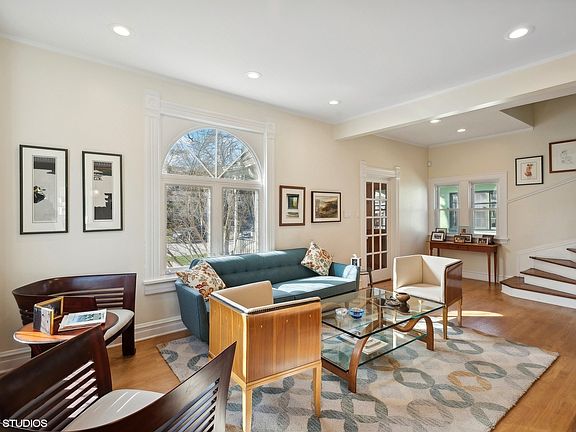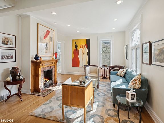 Charming 4-bedroom, 2-bathroom home boasting a blend of modern updates and original Victorian features. Bright and spacious interior includes a stylishly renovated kitchen and baths, complemented by timeless Victorian elements. The first floor showcases a cozy living room with an elegant Victorian fireplace, a separate dining room featuring delightful bow windows, a private bedroom with a newer bath, and a modern kitchen updated in 2017. Upstairs, the generously sized bedrooms bask in natural light, with the primary bedroom featuring a walk-in dressing room, ideal for an office or nursery. Recent upgrades encompass a newer hall bath, recessed lighting throughout, a furnace installed in 2020, and newer windows. The lower level space has lots of storage and a rec room for watching TV, playing or just hanging out. Outside, an expansive backyard offers a charming brick patio installed in 2017, alongside a convenient two-car garage. New sewer line to the street in 2012. Situated just a short stroll from public transportation, shopping, esteemed schools, and the Robert Crown Community Center.
