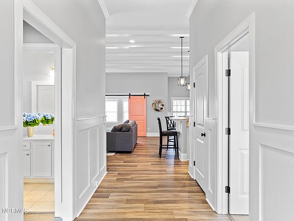 Built in 2015 by Bill Clark Homes, this fantastic single level home, is in the natural gas community of Belle Meade Village, in midtown Wilmington. Super close to Barclay Point, Greenfield Lake, and Monkey Junction! Enjoy sunsets overlooking the pond, relaxing in your hot tub on the large, covered back patio. The home has a gorgeous open layout, custom built-ins, barn doors, granite countertops with tile backsplash in the kitchen. Stainless steel appliances and incredible craftsman detail throughout. Low HOA dues. Welcome home!