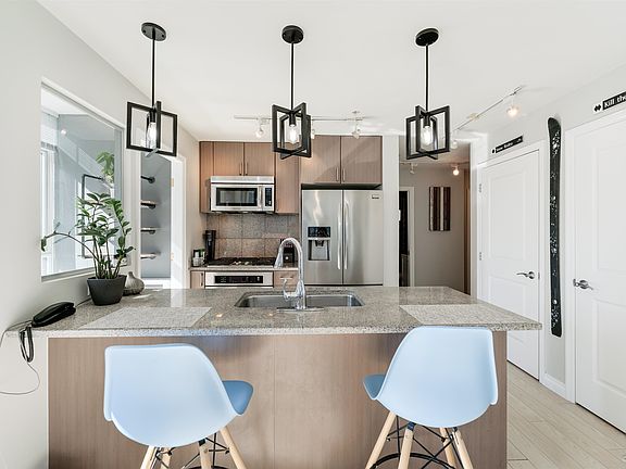 Corner unitSouth-east facingOpen functional layoutGenerous size bedroomLarge denGourmet kitchenStainless steel appliances