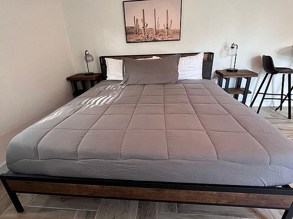 1 King Bed and 1 Queen Pullout Sofa for Sleeping. Also Everything else that is pictured.