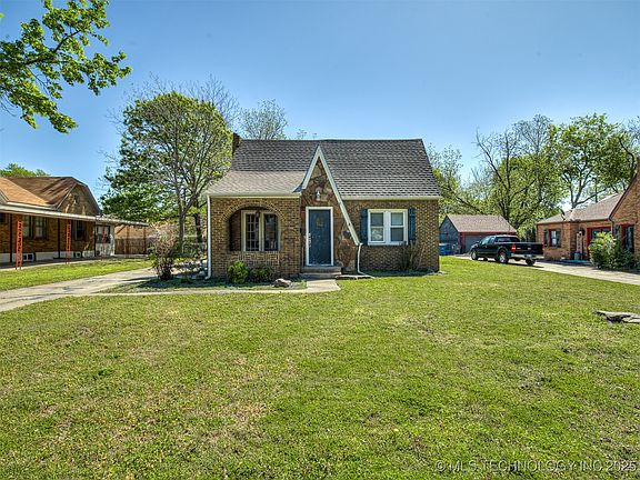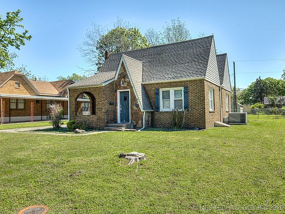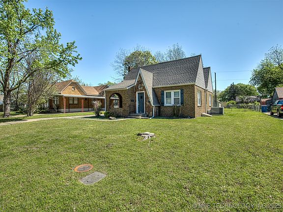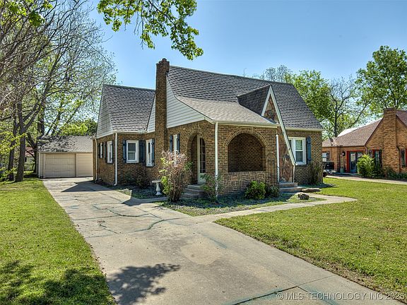 MIDTOWN CHARMER! Darling full brick English Tudor in a prime midtown location! This home blends original character with updates; including 2025 HVAC and newer vinyl windows. Original hardwood floors throughout with large living and dining areas. A decorative fireplace and beams on the ceiling add extra charm! Updated and efficient kitchen offers lots of storage, a stainless dishwasher, gas stove and the fridge can stay! Nice size bedrooms and updated hall bathroom. The inside utility room includes a stackable washer and dryer that may stay with the property. Cute backyard with a clean and functional garage and a fenced area. Don't miss the cutest front porch off the living room! Just minutes to Cherry Street, TU, shopping, dining, and quick highway access!