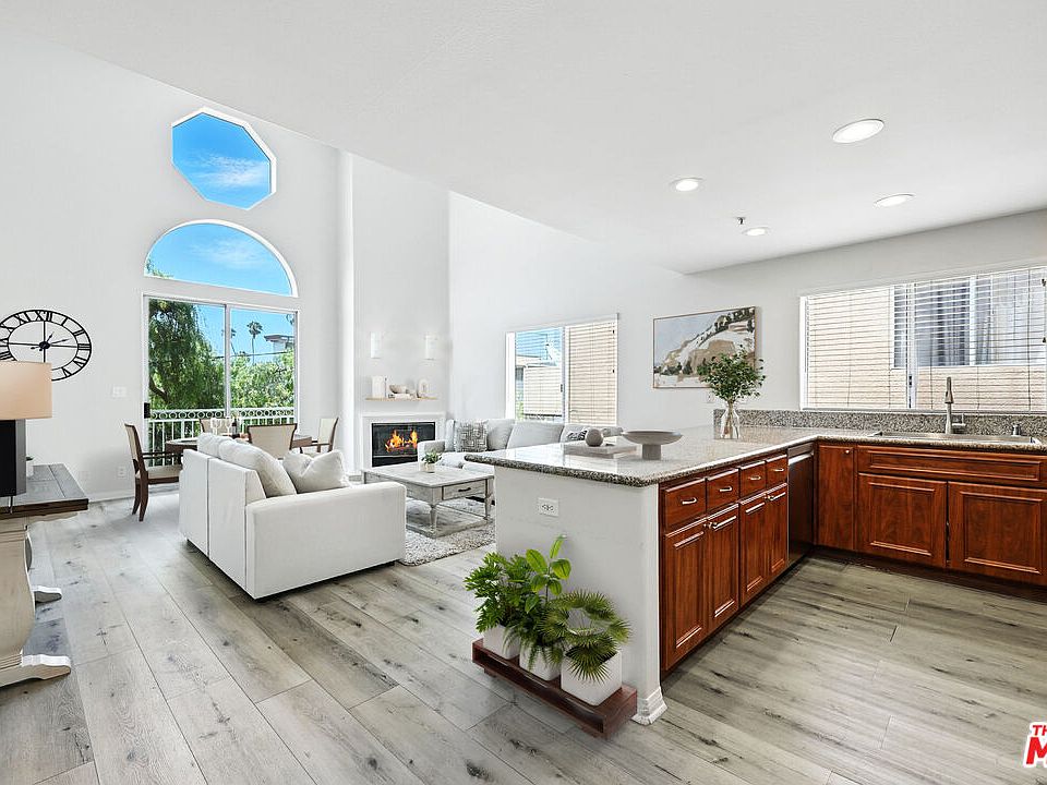 Penthouse Living with Rooftop Access in Pico-Robertson! This bright and spacious Penthouse condo with low HOA dues is tucked away in the back corner of a quiet, desirable building in the heart of Pico-Robertson. Featuring 2 en-suite bedrooms plus a large en-suite loft with a full closet , perfect for a home office, guest suite, or potential 3rd bedroom (buyer to verify). This home offers 3 full bathrooms and an additional powder room for a total of 4 baths. Soaring ceilings and clerestory windows fill the open living space with natural light. The expansive living room boasts a cozy corner fireplace and oversized sliding doors that open to a private balcony with treetop views. The gourmet kitchen includes granite countertops, rich wood cabinetry, stainless steel appliances, a new dishwasher, and a generous breakfast bar. The spacious primary suite features a large walk-in closet, dual vanities, a skylight, ceiling fan, and a substantial standing shower. A second bedroom offers its own en-suite full bath with a tub. Additional conveniences include an in-unit laundry room, multiple storage closets, a beautiful powder room, 2 dedicated tandem parking spaces plus guest parking, and direct access to the rooftop. All of this just moments away from restaurants, shopping, houses of worship, and more. Welcome to Penthouse living in one of L.A.'s most vibrant neighborhoods!