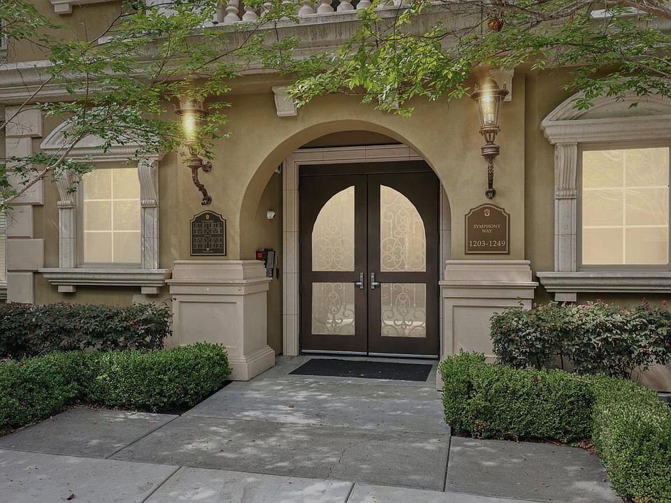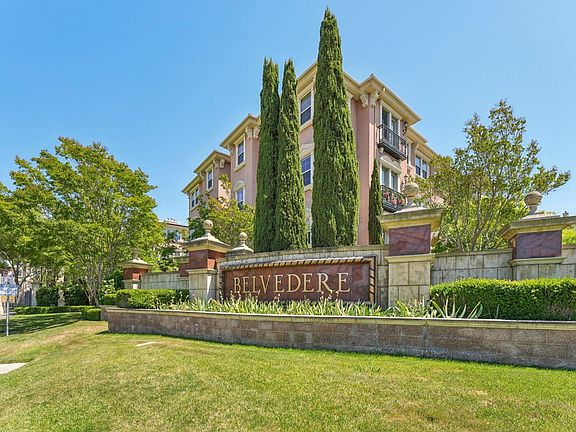 Welcome to Belvedere! A Gated Community with year round Resort-Style Amenities! This desirable ground-floor end unit offers a private patio and extra windows showcasing beautiful views of the rolling hills. The well-designed layout features two spacious bedrooms and two full baths positioned on opposite sides of the home for optimal privacy. The inviting living room with a gas fireplace flows seamlessly into the modern kitchen, complete with custom cabinetry, stainless steel appliances, and elegant countertops. Additional highlights include hardwood flooring, crown molding throughout, in-unit laundry, and central air conditioning for year-round comfort. Enjoy the convenience of two assigned underground parking spaces and access to the community's extensive amenities including a state-of-the-art fitness center, indoor pool and spa, clubhouse with kitchen, game and poker rooms, lounge areas, and outdoor BBQ spaces perfect for gatherings. Experience the perfect blend of luxury and comfort ~ Welcome Home to Belvedere!