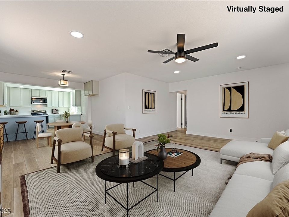 *** Now accepting FHA!***Just minutes from the Water Street Plaza's dining and entertainment, this beautifully remodeled 4-bedroom home has new window and stucco, no HOA, possible RV parking and spacious backyard. Inside, you’ll find an open-concept layout filled with natural light, featuring a stylish accent wall in the living room, ceiling fans, recessed lighting, plush carpeting, and laminate flooring throughout. The updated kitchen has views of the backyard and showcases custom cabinetry with gold hardware, sleek countertops, stainless steel appliances, recessed lighting, and a breakfast bar with seating. Both bathrooms have been fully upgraded with modern tiled showers, rainfall shower heads, built-in niches, chic vanities, framed mirrors, and designer lighting.