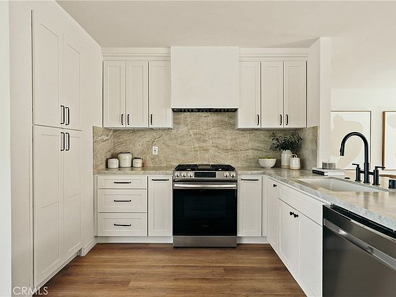 Welcome to this beautifully updated home in the prime Palisades neighborhood of San Pedro, offering stunning harbor and ocean views. Thoughtfully designed with modern touches, this bright and airy 3-bedroom, 2-bathroom residence features warm hardwood like flooring, fresh interior and exterior paint, and an open floor plan that seamlessly connects the entryway, kitchen, and over sized living area. The kitchen is a showstopper, featuring premium Taj Mahal quartzite countertops, sleek new cabinetry, and stainless appliances. Both bathrooms have been tastefully remodeled, complementing the home’s updated electrical and plumbing. The laundry room is on trend with its porcelain checkerboard floors. Large new windows throughout flood the space with natural light, and the designer light fixtures and elegant hardware updates make this home feel extra special. The livings spaces are large and the fireplace adds an extra touch of cozy. Enjoy the outdoors with the fenced in grass yard, avocado / citrus trees and back patio for entertaining. The curb appeal is accentuated by the up lighting and refreshed landscaping. Located just minutes from the world-famous Busy Bee Deli & Market, this home blends coastal charm, modern comfort, and unbeatable convenience. Don’t miss the opportunity to own this charming revitalized bungalow!