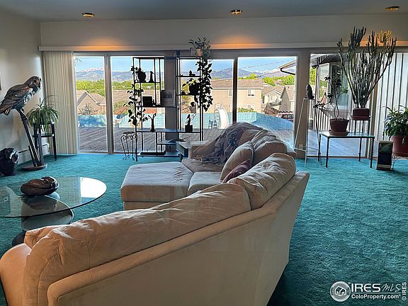 A truly unique ranch with a 4-car tandem garage, panoramic mountain views, finished walkout basement filled with Mid-century charm that sits on over half of an acre.You'll love wall-to-wall west-facing windows & four sliding doors in the living room, kitchen & owner's suite.Step outside to your oversized diveable pool with a slide.Remodeled expansive owner's suite with west-facing private deck, gorgeous spa-like bathroom featuring a soaking tub; coffee bar with fridge and sink; large two-person walk-in shower with multiple jets, heads & rainshower; hydronic towel warmer; heated travertine tile floor; & walk-thru closet with full-size washer & dryer.Marble walls grace both levels around wood-burning fireplaces.The kitchen has been remodeled with new appliances, countertops and flooring. You'll also discover a bonus room off the living room as well as a separate dining room with built-in cabinetry & kitchen pass-through.In the walkout basement, there is a mother-in-law's suite with a full kitchen & bath, & a private entry.You will also find a family room, two gas stoves, an 18-foot wet bar with tons of storage & a nearly 300 square-foot laundry room with a twin-basin utility sink, extra storage, & an additional washer and dryer.There is a two car carport out front & a paved circular driveway that wraps around the property to access the 4-car tandem garage.This home has mature trees, large lawns & a 2,000 square foot perennial garden.The south side of the house features a shaded deck off the kitchen & a fenced yard with turf.Sit by the newly refinished pool & watch as the sun sets over the Rockies!