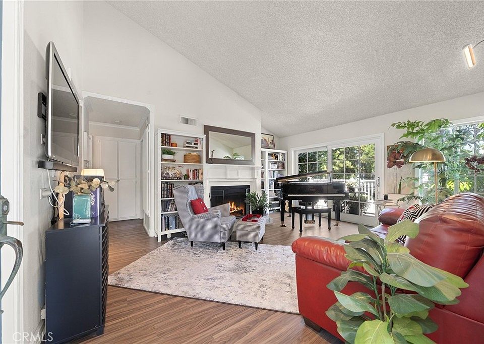 Fantastic move-in ready condo in the peaceful and coveted Ponderosa Springs community! This tastefully updated second story one-bedroom unit feels especially spacious with vaulted living room ceiling and plenty of natural light through windows and private balcony slider. Recently re-floored with quality, neutral tone laminate throughout, this floor-plan is both functional and cozy. Living room fireplace, effecient, well-illuminated kitchen and serene bedroom retreat with a very generous walk-in closet. Stackable laundry in-unit. The original dining area has been finished with crown moldings and French doors to create a versatile multi-purpose room for home-office, craft room, guest room, nursery or formal dining! In-unit storage includes a dedciated linen closet and a good-sized utility closet on the balcony. Mature trees and well-tended plants frame neighborhood and city light views to the north and east from the unit and define the Ponderosa Springs community along with nearby streams. Other ammenities include several pools, spas and community outdoor areas. This is a must-see property, and one of the most affordable in San Pedro.